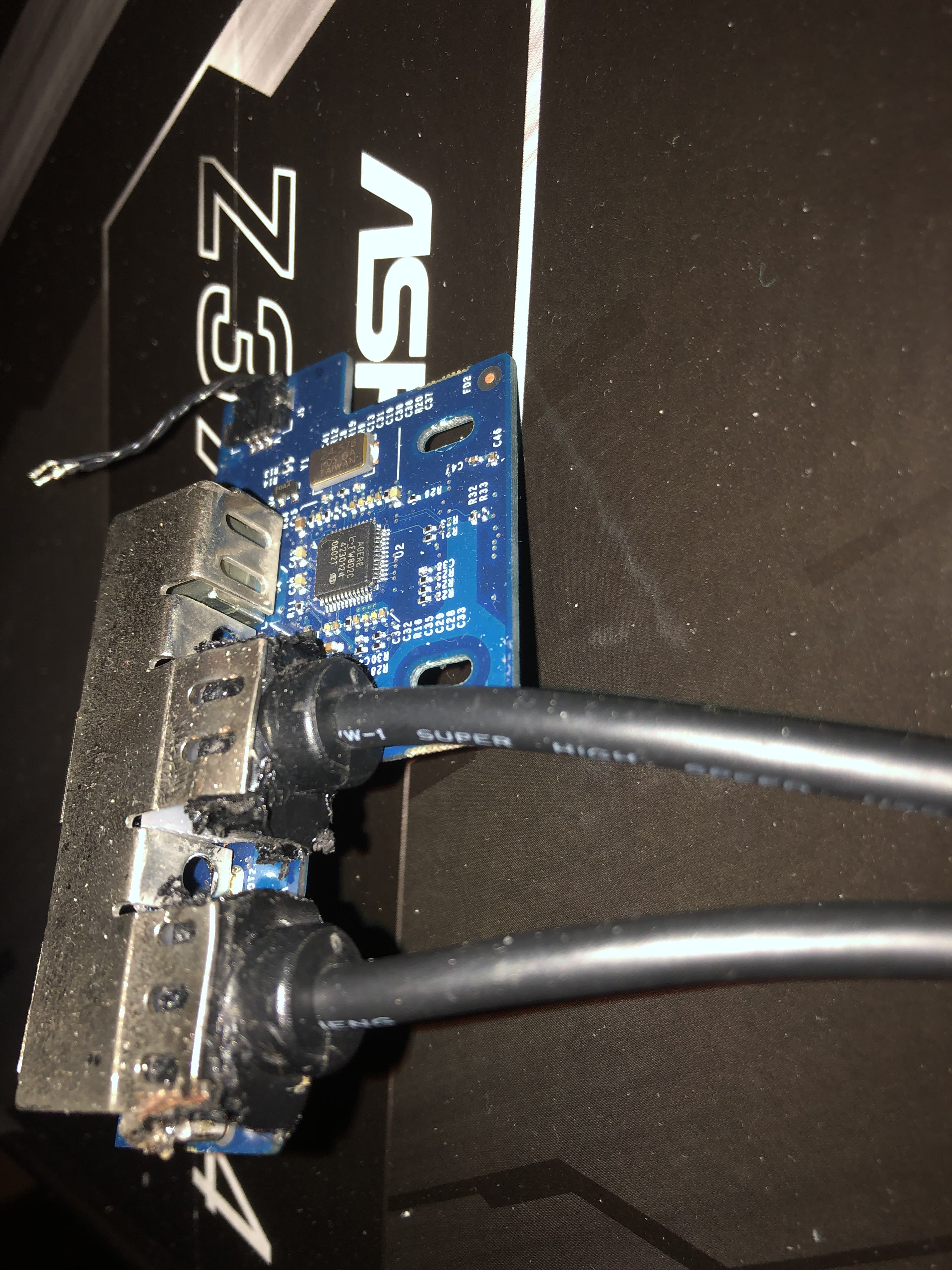 USB 3.0 cable from amazon fused together with board